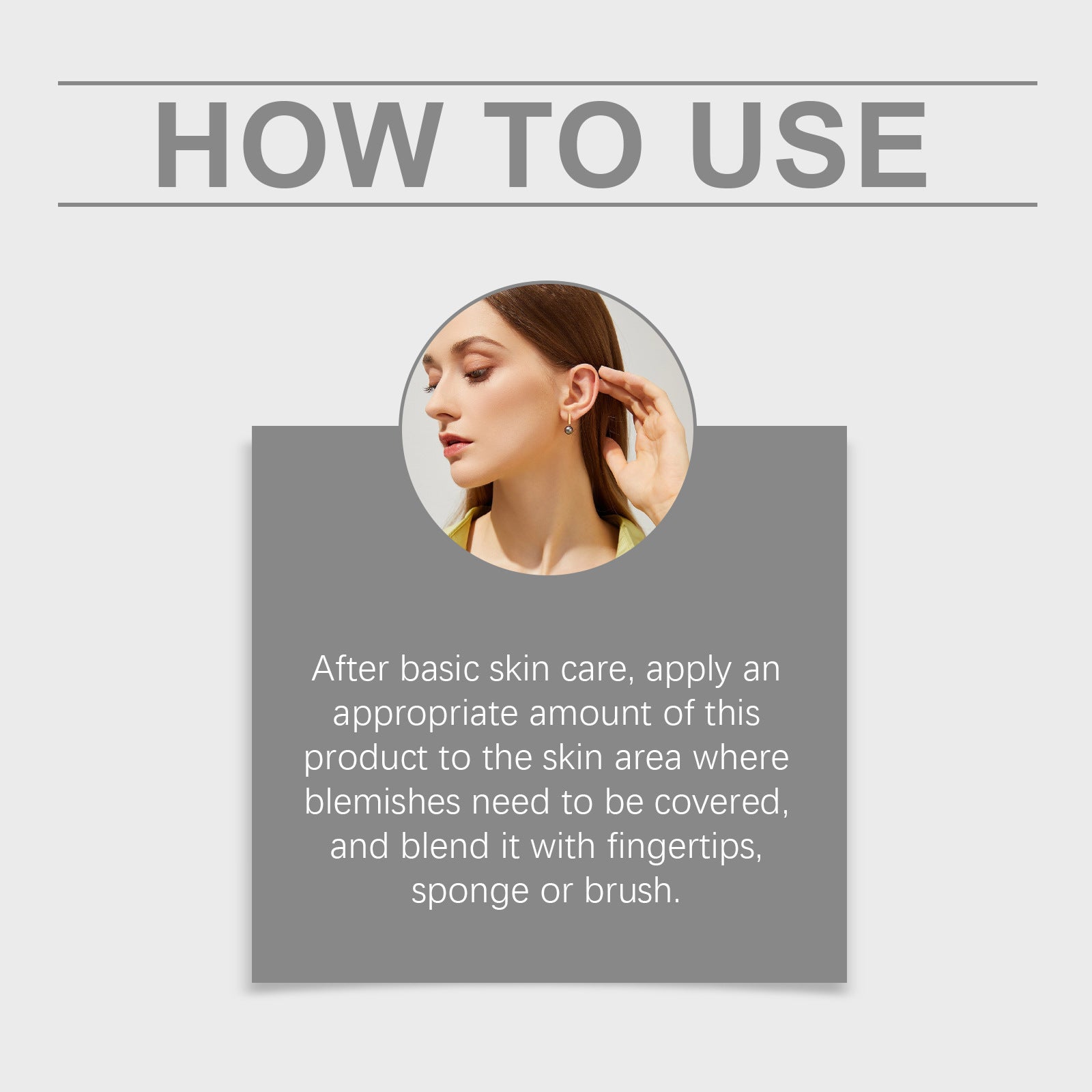 Quickly covers dark circles, acne, spots, and other imperfections, precisely correcting flaws for a flawless and natural makeup look.
