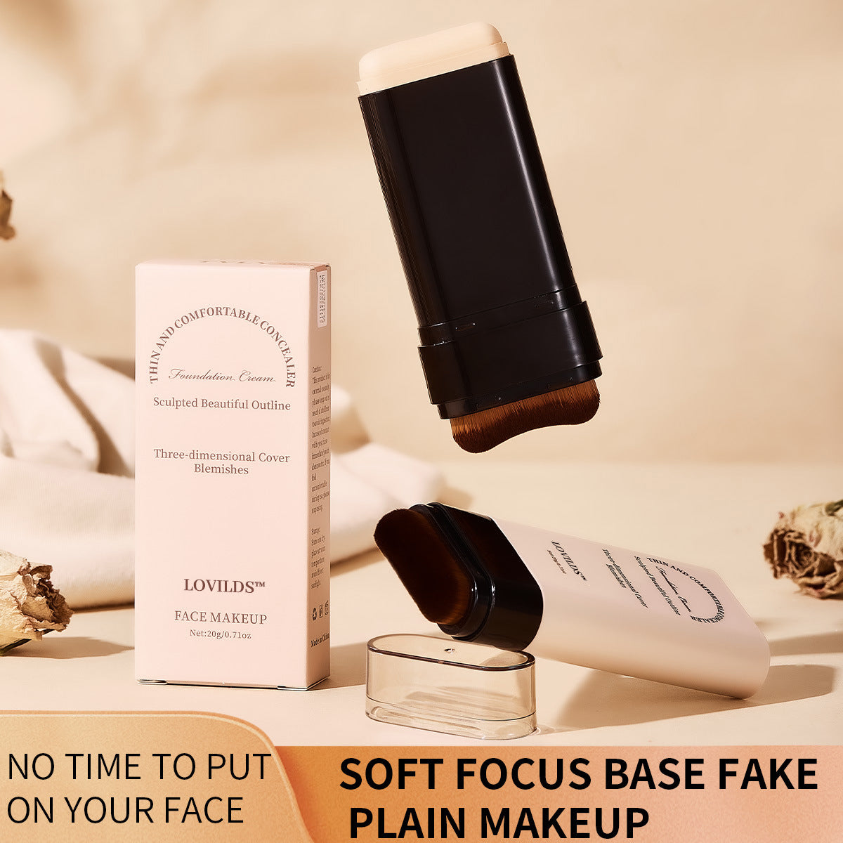 🌟 LOVILDS™ Dual-Ended Foundation Stick with Brush – Seamless, Long-Lasting Coverage & Flawless Finish